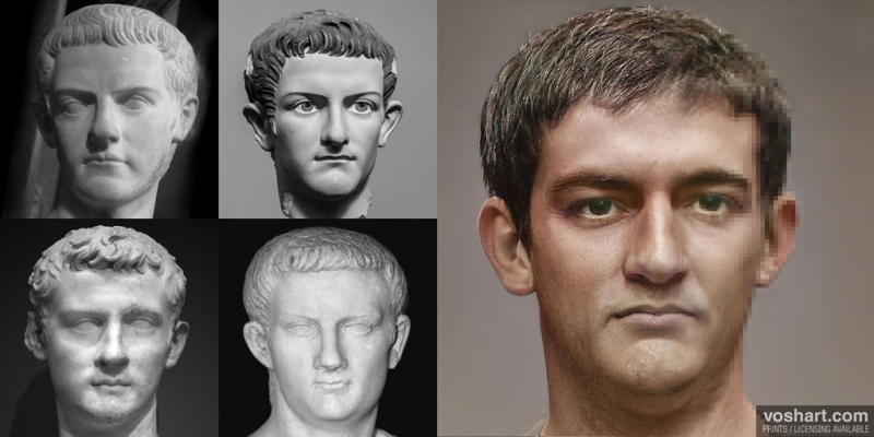 Het gezicht van keizer Caligula, gereconstrueerd door Daniel Voshart.